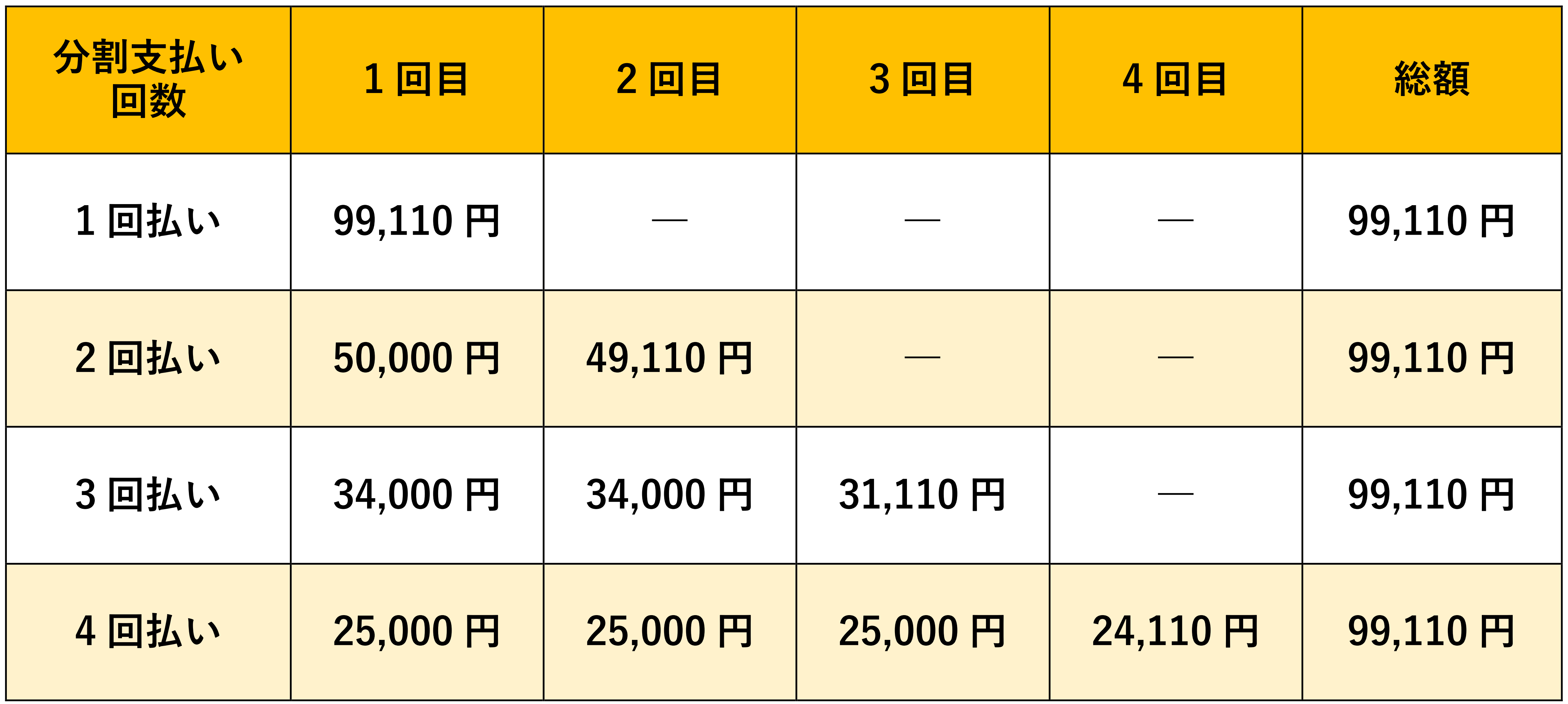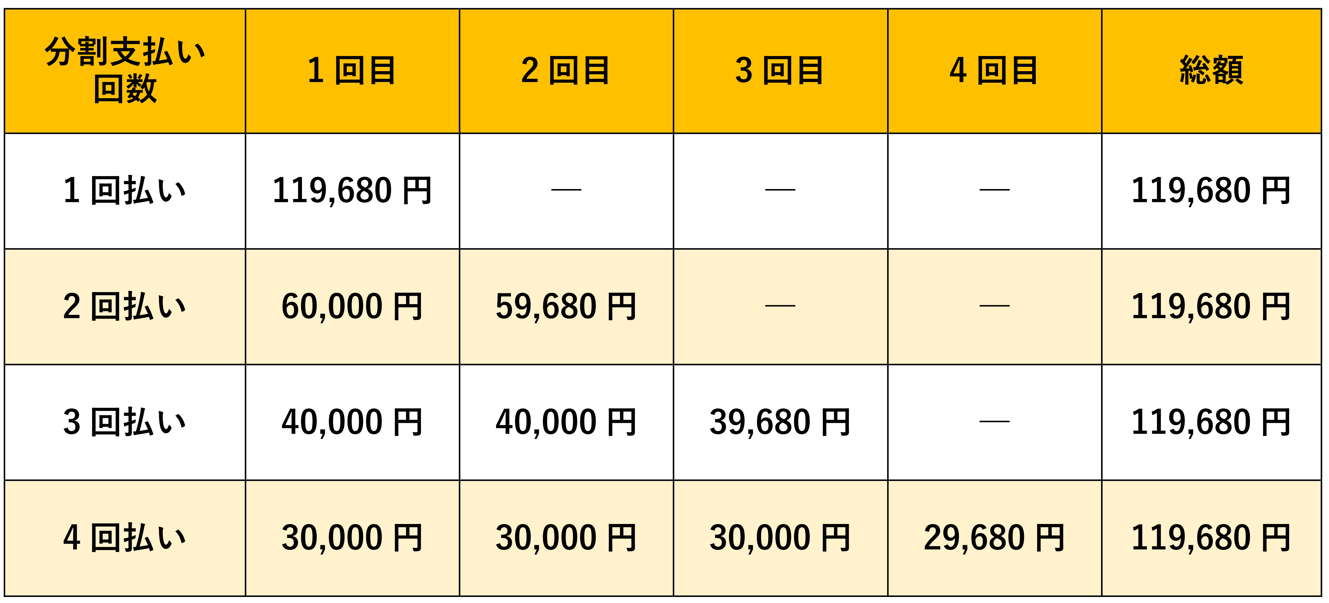 実務者研修養成校沖縄では、受講者の皆さまのお支払いの負担を少しでも軽減する目的から「分割払い」もご用意しております。分割払いは、2回から最大4回まであり、指定された期日までにお支払いをお願いしております。